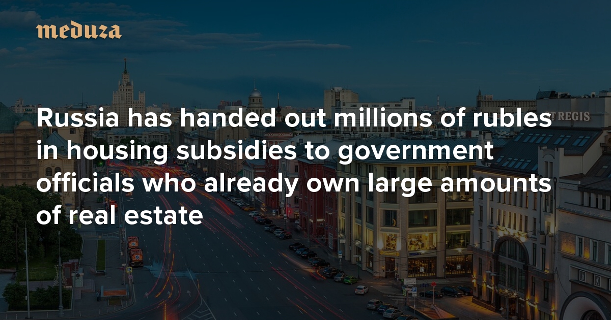 Russian citizens in need of public housing often go decades without receiving assistance. Meanwhile, hundreds of government officials — including ministers, governors, and their deputies — have received tens of millions of rubles in housing subsidies since 2012, according to a joint report from iStories and Transparency International Russia. What’s more, the investigation uncovered that some of these officials deemed “needy” already owned multiple pieces of real estate. Meanwhile, others have used these funds to purchase additional properties or, by all appearances, haven’t used this government money to purchase any housing at all. Meduza summarizes the report’s findings here.
