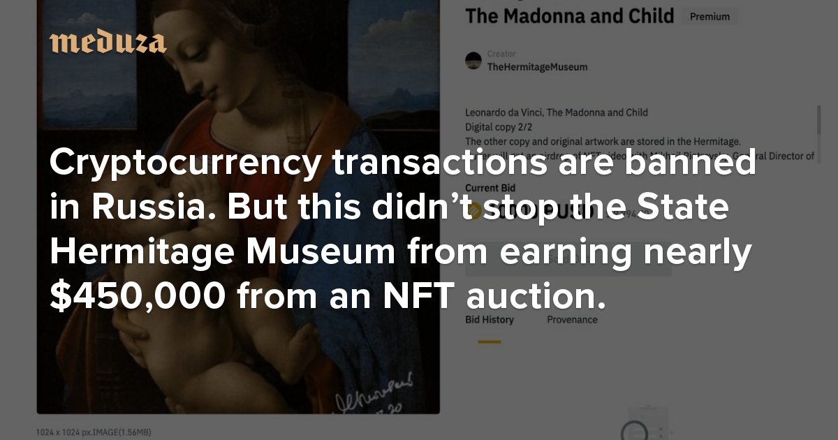 ‘Rubles cleared of risks’ Cryptocurrency transactions are banned in Russia. But this didn’t stop the State Hermitage Museum from earning nearly $450,000 from an NFT auction.