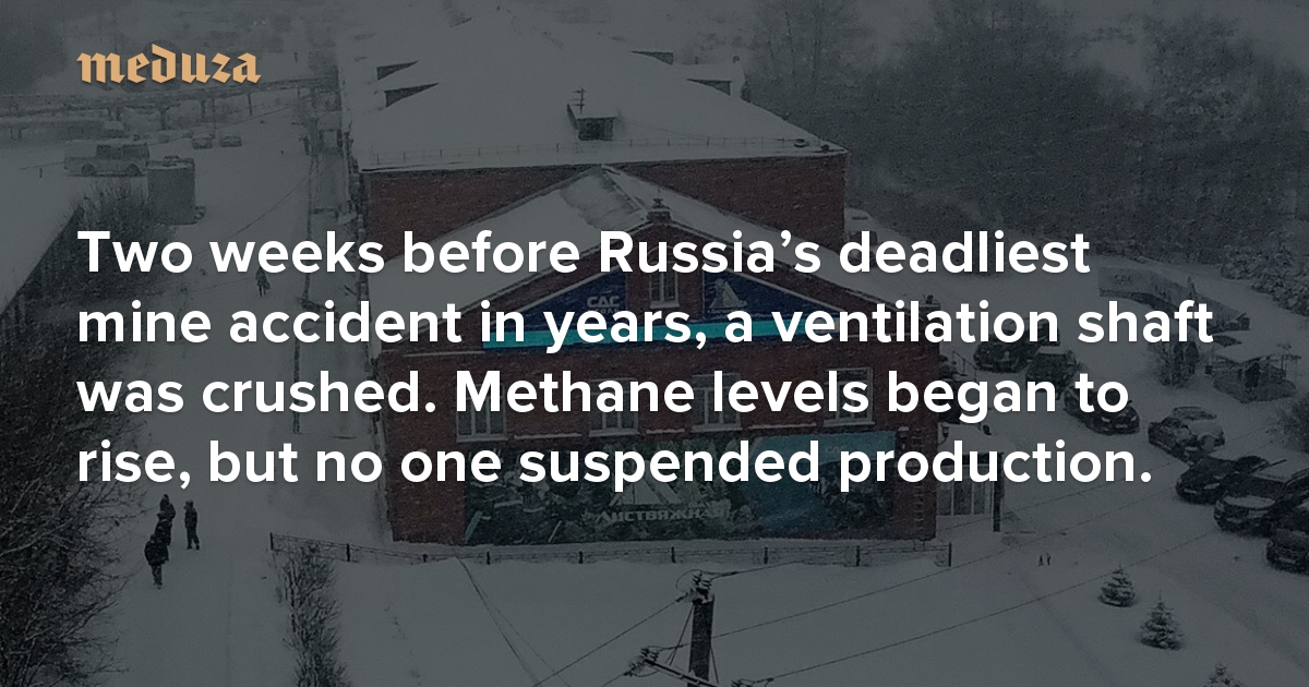 A methane blast at the Listvyazhnaya coal mine in Siberia’s Kemerovo region killed 51 people on November 25. It was the deadliest mining accident Russia had seen since 2010. The explosion sent toxic smoke through the mine’s ventilation system, suffocating miners and rescue workers who came to their aid. But as miners at the Listvyazhnaya told Meduza, the mine’s methane levels had been critical for about two weeks beforehand, ever since a rock collapse “completely crushed” a ventilation shaft. The Listvyazhnaya’s management, however, opted against shutting down operations. According to the miners Meduza spoke to, their bosses were afraid they wouldn’t fulfill the production plan.