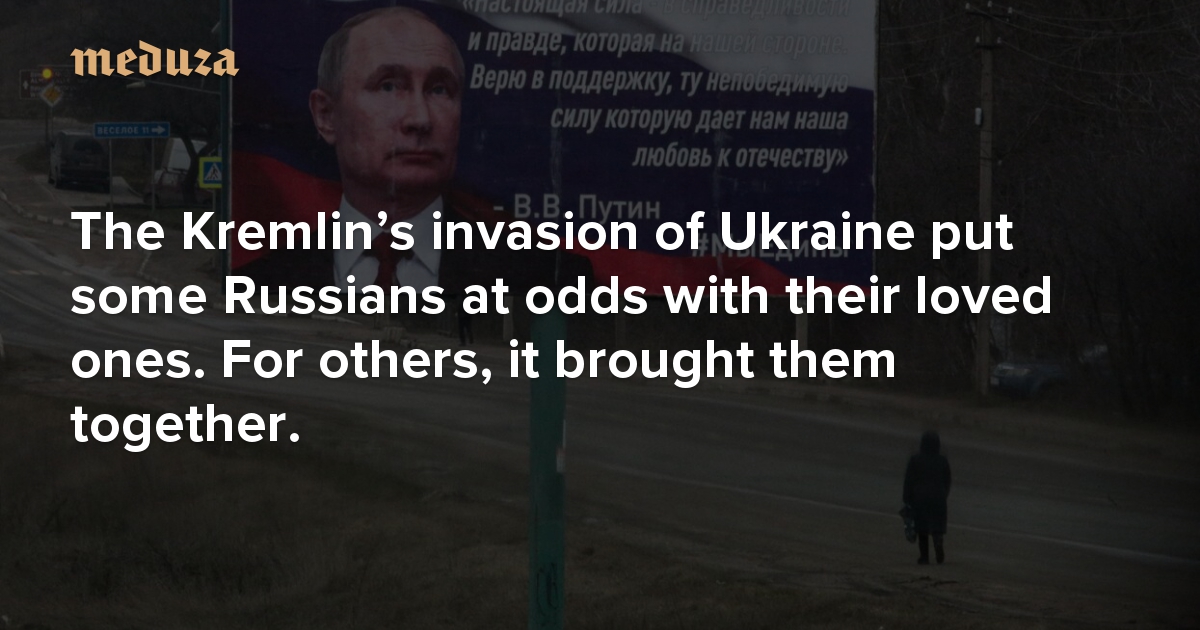 In the aftermath of Vladimir Putin launching a full-scale invasion of Ukraine, many Russians have found themselves at loggerheads with their loved ones. With the Kremlin’s propaganda machine in full swing, some are having a hard time convincing their relatives that the war being waged in Ukraine is more than just a “special military operation.” For other families, opposing the war has been a source of common ground that allowed them to reconcile their political views. Here are some of their stories, as recounted to Meduza.