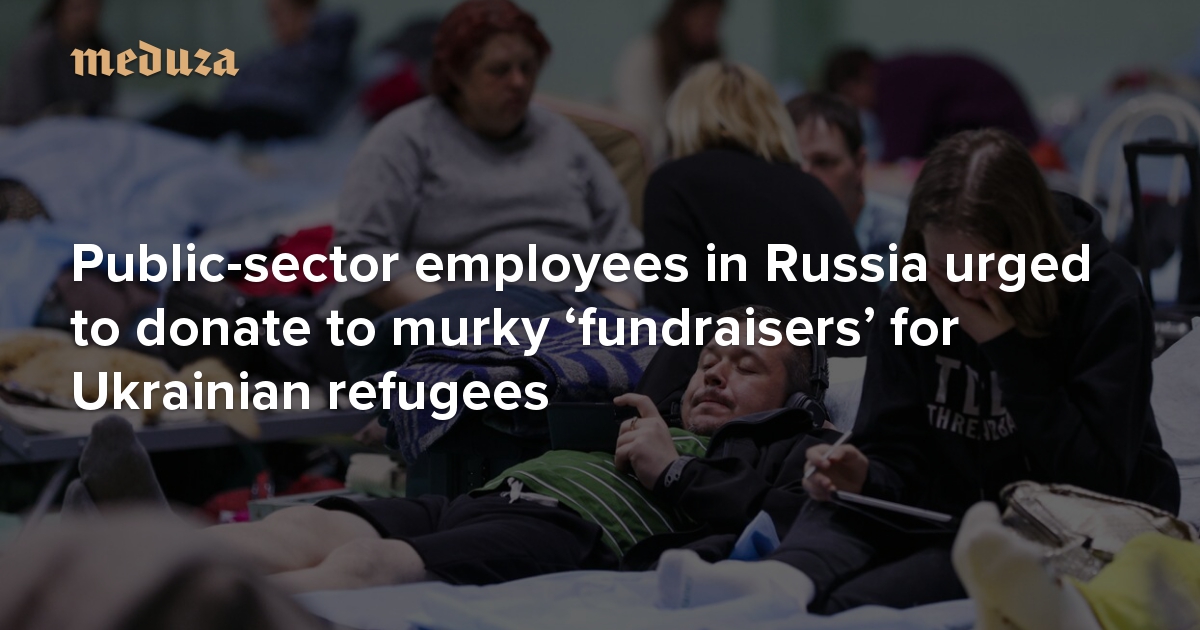 In the lead up to Moscow’s full-scale invasion of Ukraine, the authorities in the self-proclaimed “Donetsk and Luhansk People’s Republics” announced mass evacuations to Russia. Now, after ten weeks of all-out war, roughly a million Ukrainians have been forced to flee to Russian territory. As Meduza reported previously, civilians living in areas occupied or blockaded by Russian troops have been forcibly evacuated to Russia and brought to “filtration camps.” In mid-April, the Russian Cabinet allocated nearly 439 million rubles ($6.5 million) from the country’s reserve fund for the accommodation of these refugees. However, in a number of Russian regions, public-sector employees are being urged to donate part of their paychecks to purported “fundraisers” in support of displaced Ukrainians.