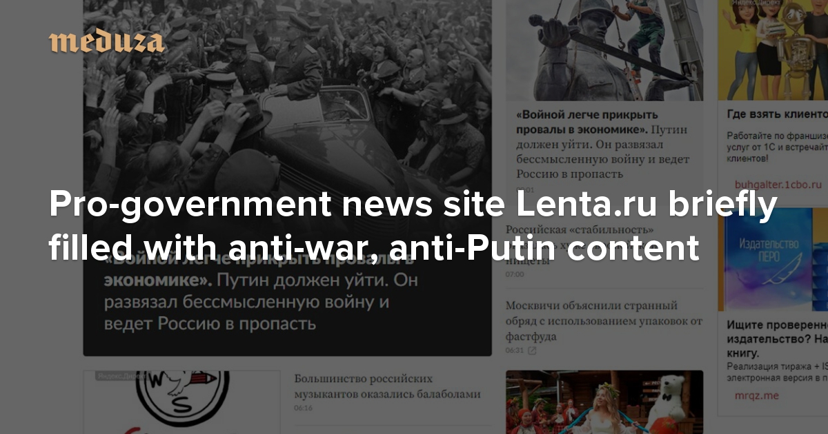 Lenta.ru briefly filled with anti-war, anti-Putin content Two employees claimed responsibility for the protest