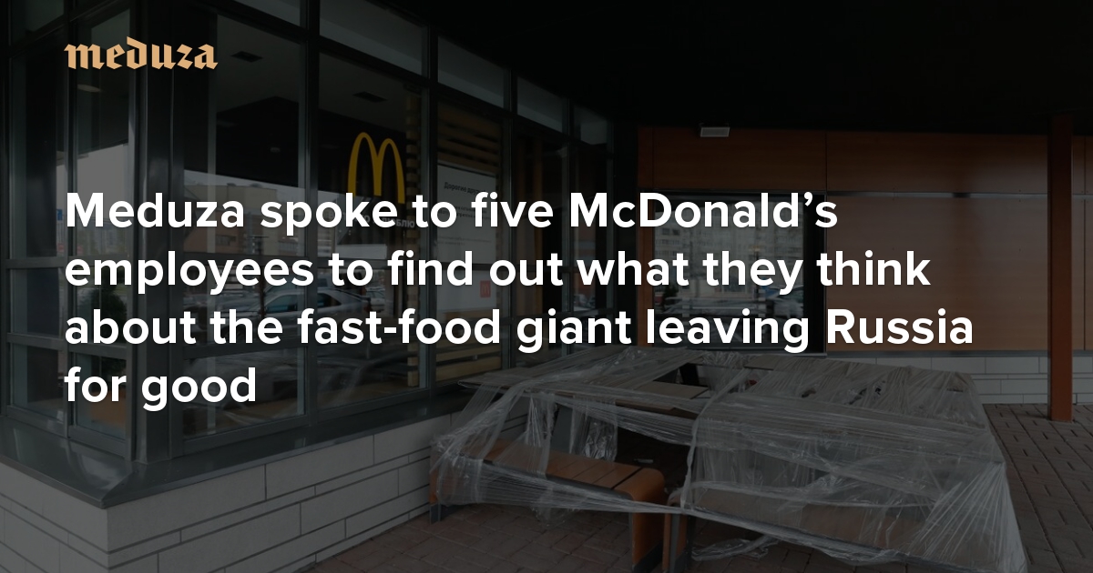 McDonalds has announced that it is leaving the Russian market after 32 years of doing business there. Since mid-March, operations have been suspended at McDonalds’ 850 restaurants across Russia. On May 16, the company confirmed that it will sell its Russian business. Existing locations will be rebranded, and the iconic Golden Arches will vanish. According to the state news agency TASS, the new restaurants could open as soon as mid-June. Before the invasion, McDonalds employed 62,000 people at its franchises. The company continued to pay these staff even after suspending business in Russia. Meduza spoke to a handful of McDonalds workers to learn their thoughts about the chain’s departure from Russia, and to find out what they plan to do next.