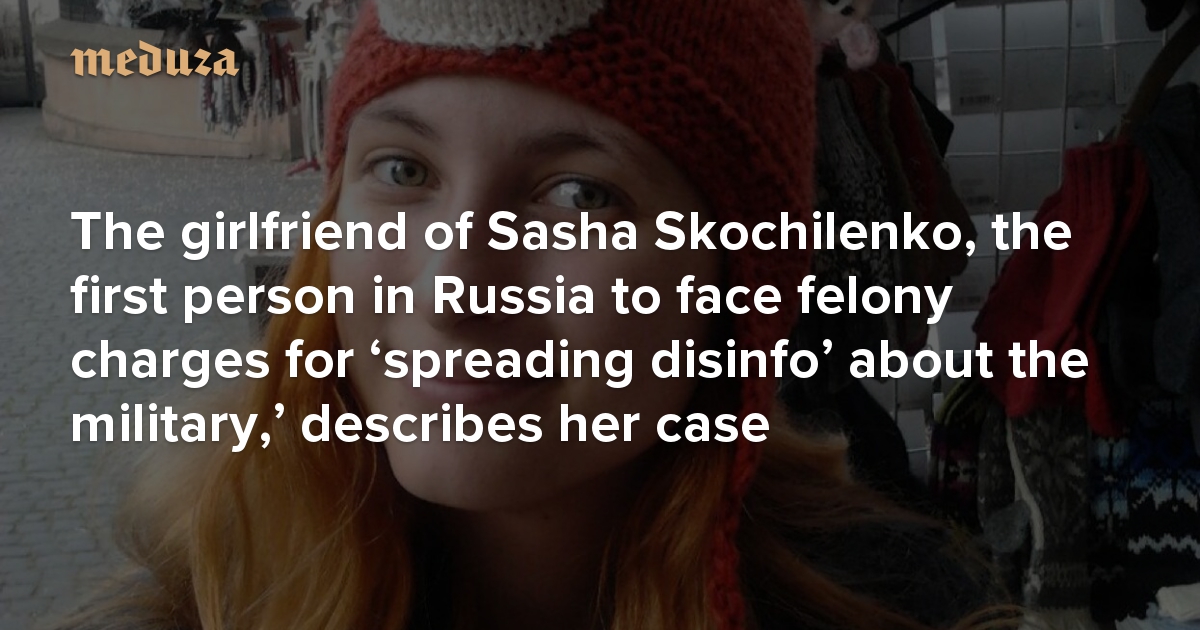 On April 13, a court in St. Petersburg jailed artist Sasha Skochilenko for replacing price tags at a local grocery store with stickers bearing anti-war messages. Skochilenko stands accused of the felony offense of spreading “disinformation” about the Russian military. Meduza spoke to her girlfriend, Sofya Subbotina, about the artist’s life before and after Russia’s February invasion of Ukraine, her arrest, and the conditions of her pre-trial detention, which now jeopardize Skochilenko’s life.