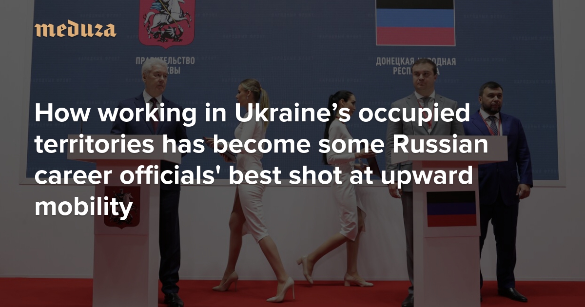 For Russia to sell its official narrative about the war in Ukraine, it needs Ukrainian defectors to take high-ranking positions in its occupation governments. But the Kremlin has reasons to want a certain number of posts filled by Russians, too. Since patriotism alone is evidently not a strong enough force to convince Russian officials to move to Ukraine, the Kremlin often sweetens the deal with exorbitant salaries — and makes it clear the officials have stagnant careers to look forward to if they refuse. Meduza's Andrey Pertsev explains how moving to Ukraine became some bureaucrats' best option.