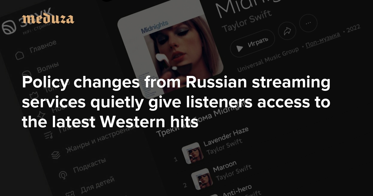The outlets RBC, Sobaka, and Rozetked have all noted that popular albums such as Midnights by Taylor Swift, Zeit by Rammstein, Return of the Dream Canteen by Red Hot Chili Peppers, Mr. Morale & the Big Steppers by Kendrick Lamar, The Car by Arctic Monkeys, Renaissance by Beyonce, and Harry’s House by Harry Styles can all be found on the Russian streaming service Zvuk.