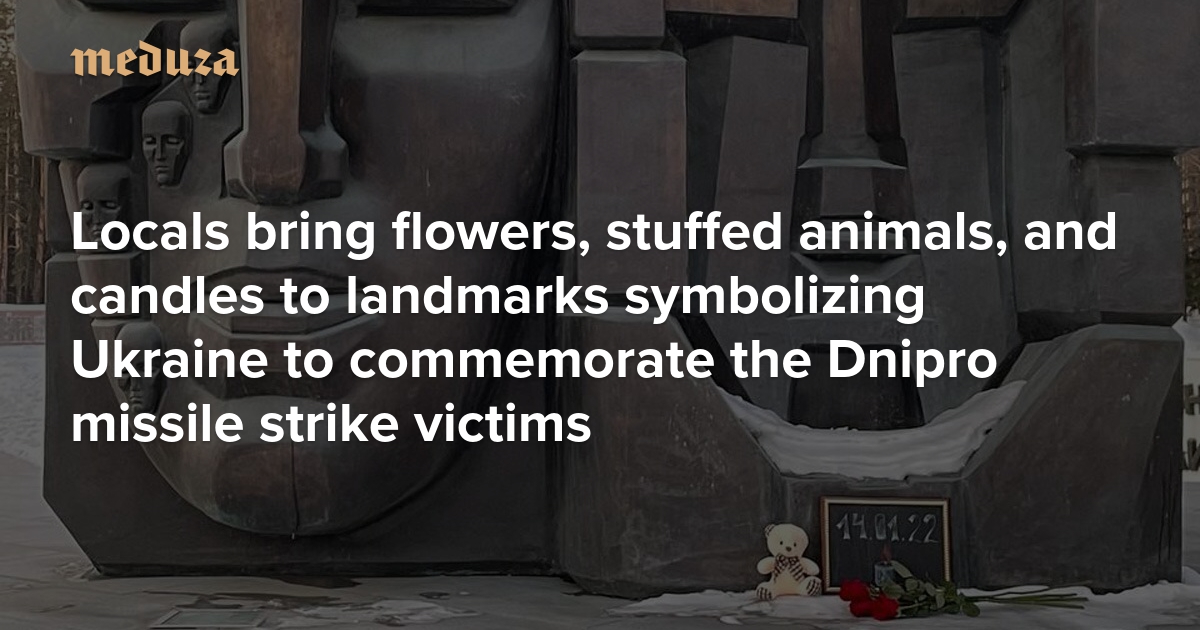 Makeshift memorials across Russia Locals bring flowers, stuffed animals, and candles to landmarks symbolizing Ukraine to commemorate the Dnipro missile strike victims