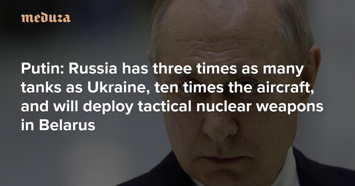Russian president Vladimir Putin gave an interview to the All-Russia State Television and Radio Broadcasting Corporation, which ran the interview on state-run television network Russia 24. During the interview, Putin spoke about Western countries’ plans to supply Ukraine with weapons and ammunition, as well as the current state of Russia’s military-industrial complex. The Russian president also announced his plans to deploy tactical nuclear weapons on the territory of neighboring Belarus. Meduza shares the most important parts of Putin’s remarks.