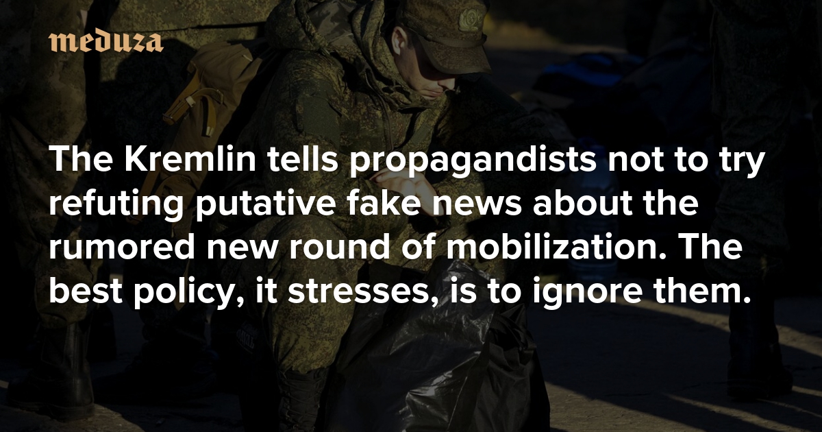 Let’s. Not. Go. There. The Kremlin tells propagandists not to try refuting putative fake news about the rumored new round of mobilization. The best policy, it stresses, is to ignore them.