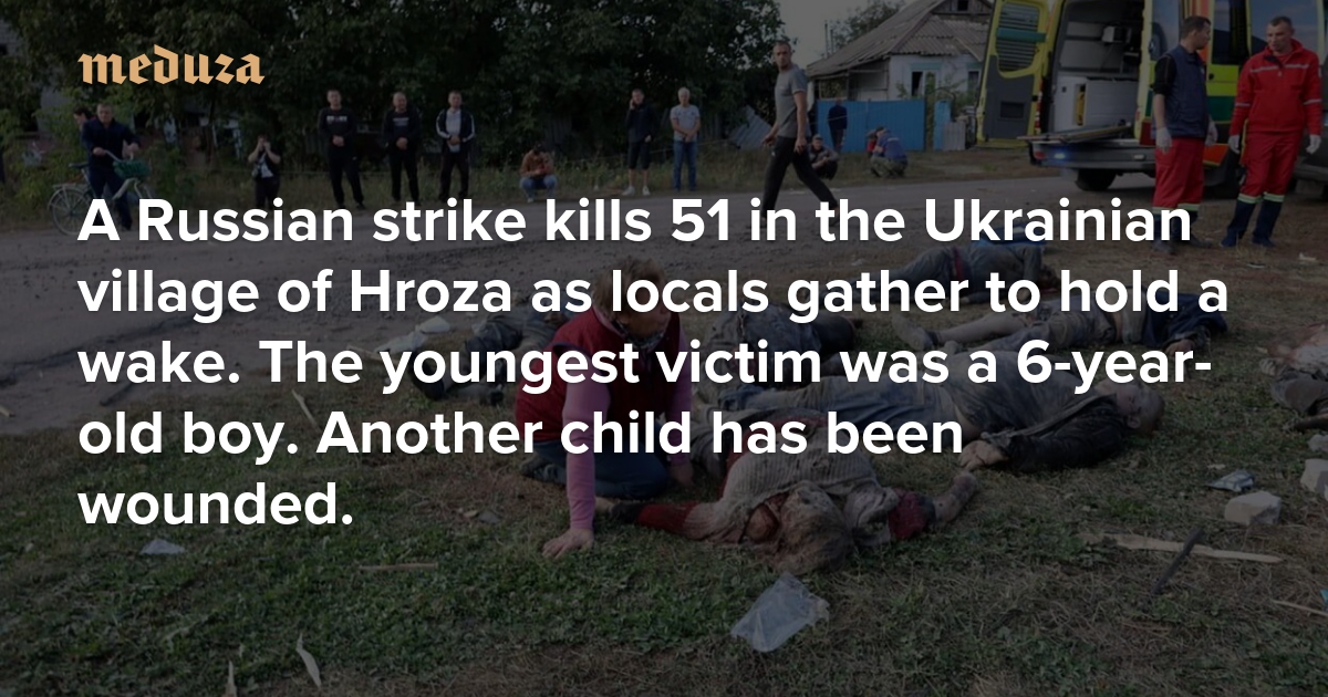 A Russian strike kills 51 in the Ukrainian village of Hroza as locals gather to hold a wake The youngest victim was a 6-year-old boy. Another child has been wounded.