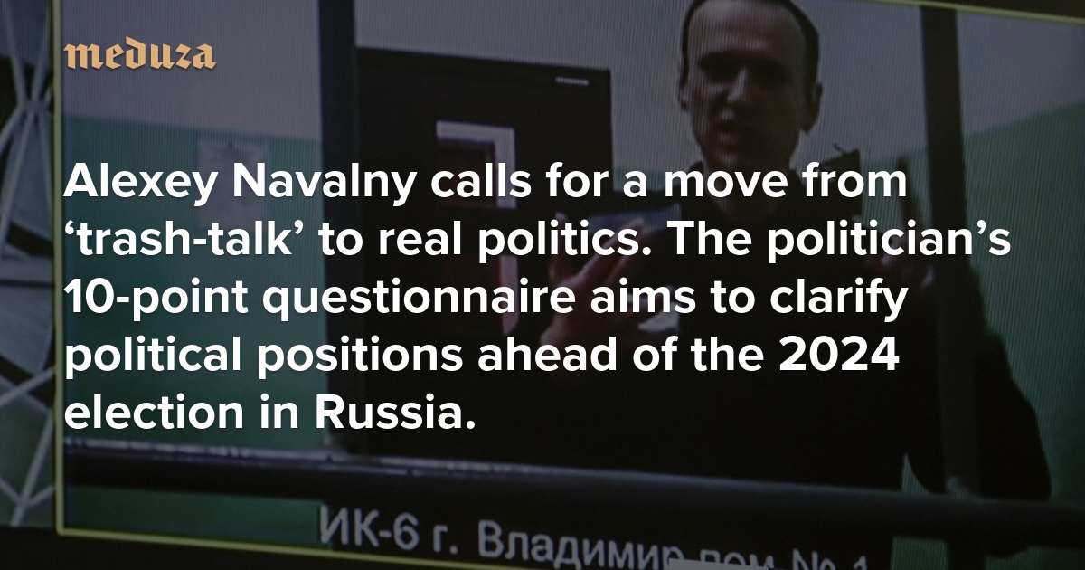 Alexey Navalny calls for a move from ‘trash-talk’ to real politics The politician’s 10-point questionnaire aims to clarify political positions ahead of the 2024 election in Russia
