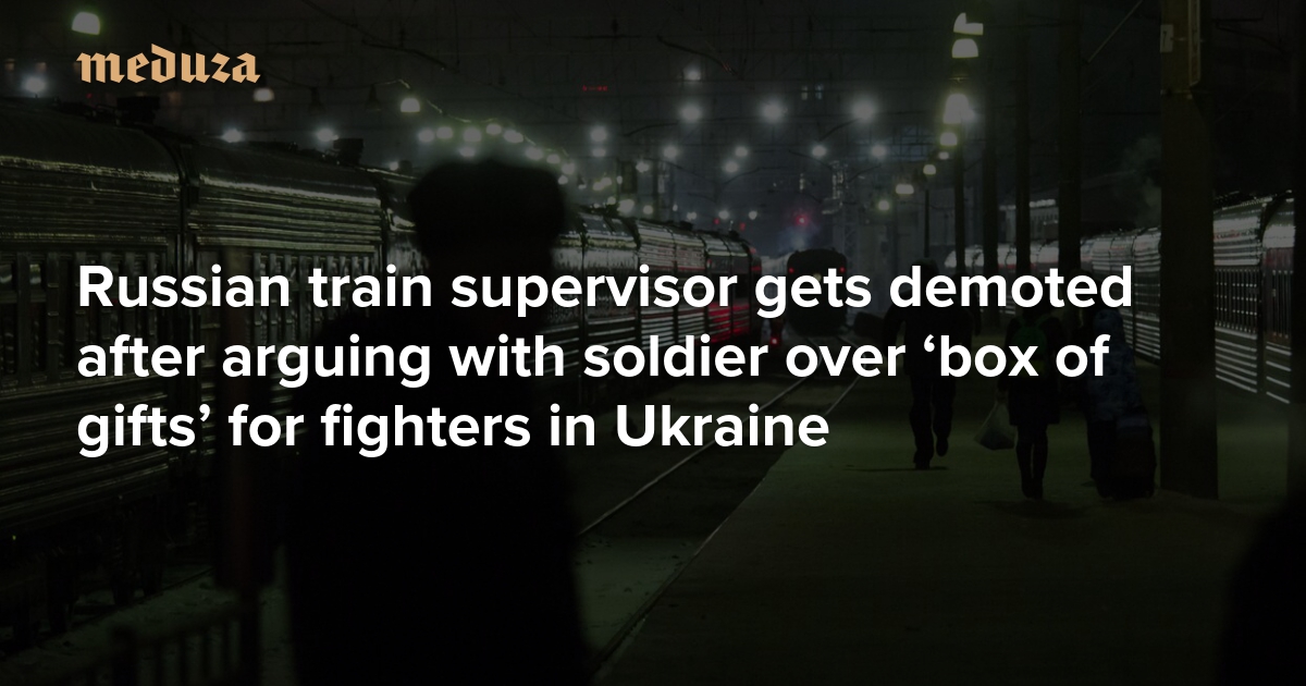 A disagreement on a Russian train between the train’s supervisor and a soldier who refused to pay for excess baggage — allegedly containing “gifts” for service members fighting in Ukraine — spiraled into a scandal after a video of the confrontation was posted online. Following accusations from a pro-Kremlin Telegram channel that the railway employee had shown “disrespect” to the soldier, Russian Railways apologized to the “high-ranking officer” and demoted the supervisor to conductor. Mediazona spoke with the former supervisor’s colleague to uncover more details. Meduza summarizes the story.