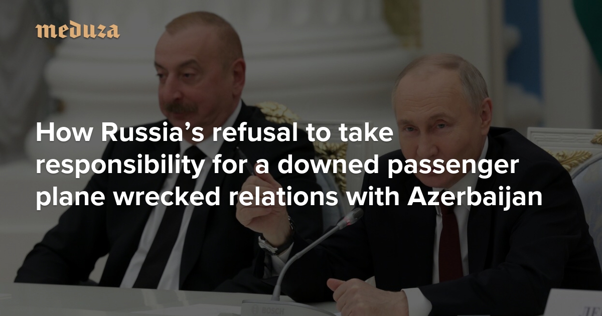Relations between Moscow and Baku have continued to deteriorate ever since a deadly plane crash in Kazakhstan on Christmas Day sparked a diplomatic crisis. Russia’s refusal to take responsibility for downing the Azerbaijan Airlines passenger plane has left Azerbaijan indignant, leading Baku to shutter the local Russian House and threaten to take legal action against Russia “in an international court.” Meduza explains how the plane crash wrecked Russia’s warming relationship with Azerbaijan and why Moscow has limited options for putting pressure on Baku going forward.