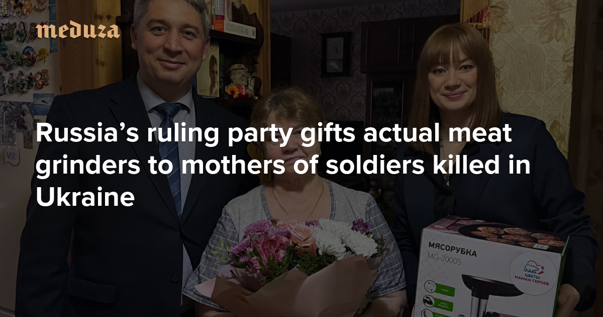 Russia’s ruling party gifts actual meat grinders to mothers of soldiers killed in Ukraine