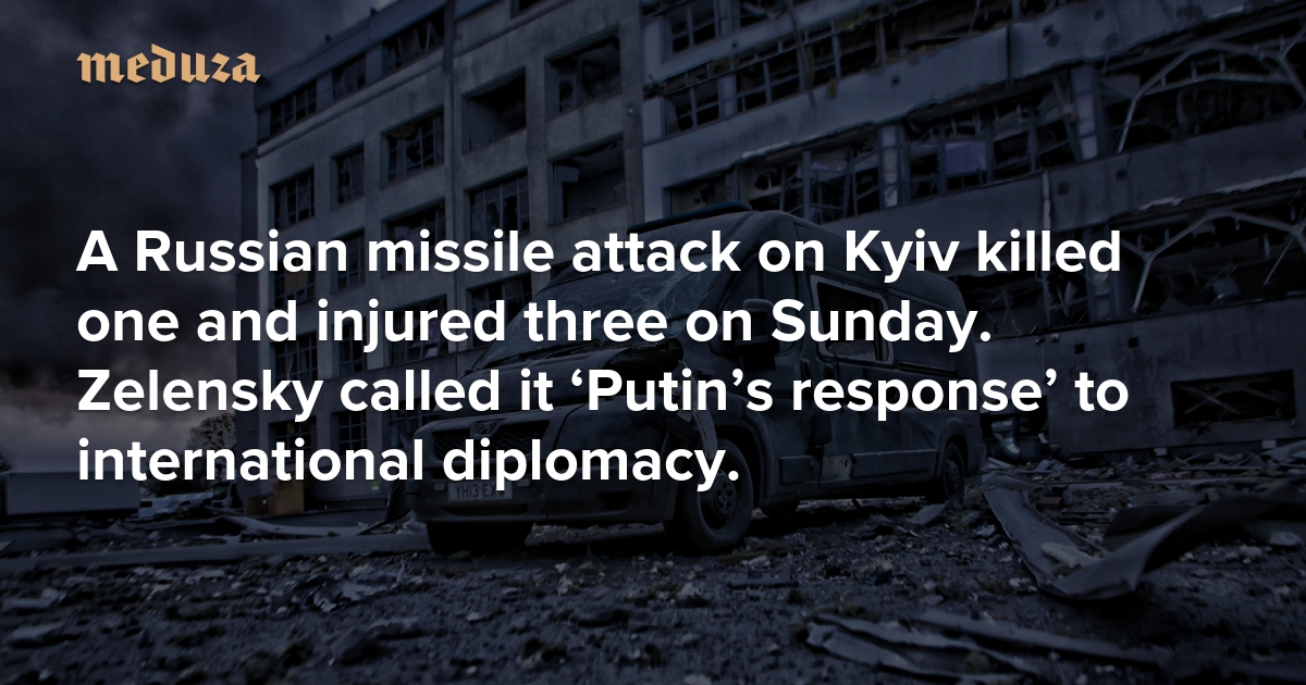 ‘The pressure still isn’t enough’ A Russian missile attack on Kyiv killed one and injured three on Sunday. Zelensky called it ‘Putin’s response’ to international diplomacy.