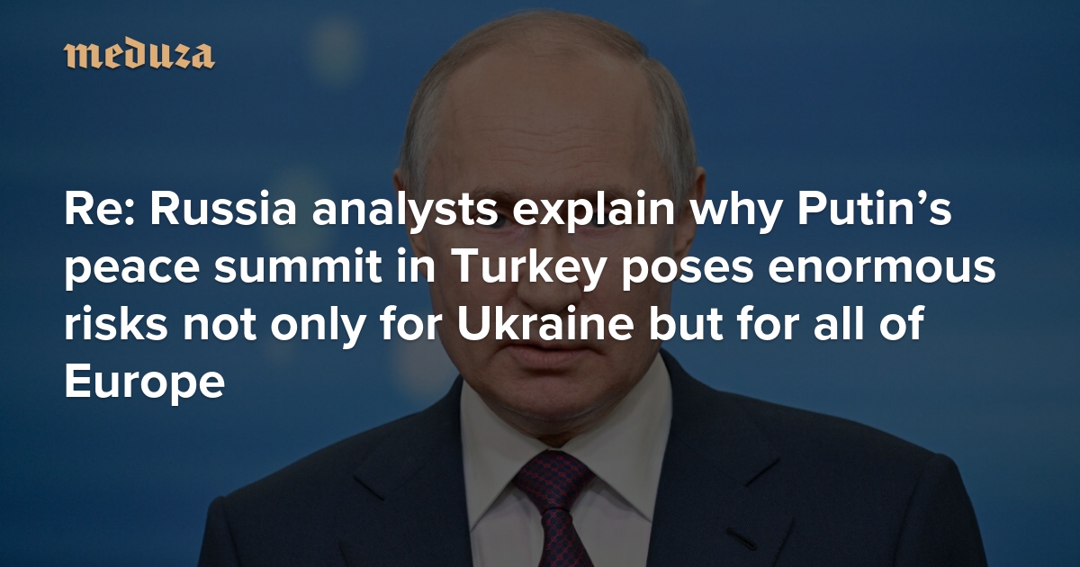 Volodymyr Zelensky says he will fly to Turkey and wait there for Vladimir Putin, aiming to resume direct negotiations on Thursday, May 15. If the Russian president shows up, U.S. President Donald Trump has said he’ll join, too. Put simply, what happens next hinges on Vladimir Putin, who was the first to propose a meeting in Turkey. In a recent essay, experts from Kirill Rogov’s think tank, Re: Russia, warned that the talks pose enormous risks not only for Ukraine but for all of Europe. Meduza summarizes the article’s main arguments.