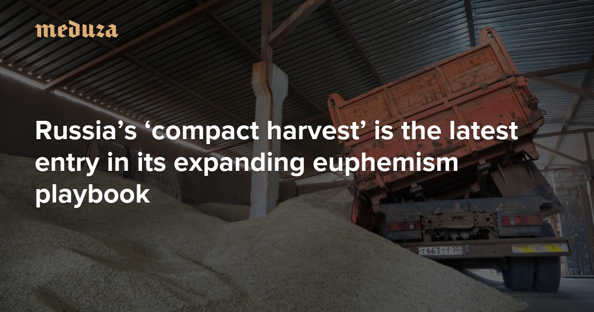 On July 15, Dmitry Rylko, the general director of Russia’s Institute for Agricultural Market Studies (IKAR), introduced a new euphemism in an interview with the agricultural magazine Pole.rf: “compact harvest.” The term is the latest addition to a growing lexicon of state doublespeak aimed at recasting harsh realities in vague and gentler terms. Since the start of the full-scale war, pro-government media and officials have increasingly used phrases like “negative growth” instead of “decline,” or “a loud bang” in place of “explosion.”
