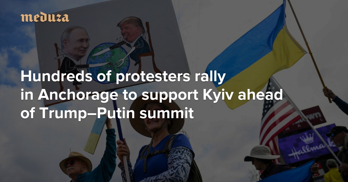U.S. President Donald Trump and Russian President Vladimir Putin are meeting for talks in Anchorage, Alaska, on Friday, with the war in Ukraine topping the agenda — though Ukrainian President Volodymyr Zelensky won’t be at the table. In the run-up to the summit, Anchorage has seen a wave of pro-Ukraine rallies. Three days before the meeting, Erin Jackson-Hill, head of the nonprofit Stand UP Alaska, told the Ukrainian state news agency Ukrinform that Putin is “a war criminal and has no place on American soil,” adding, “We do not support authoritarian dictators being invited to our state.” Stand UP Alaska says about 1,000 people joined their August 14 protest. On Friday, they plan to unfurl a massive Ukrainian flag in downtown Anchorage. Meduza has photos from Thursday’s rally.