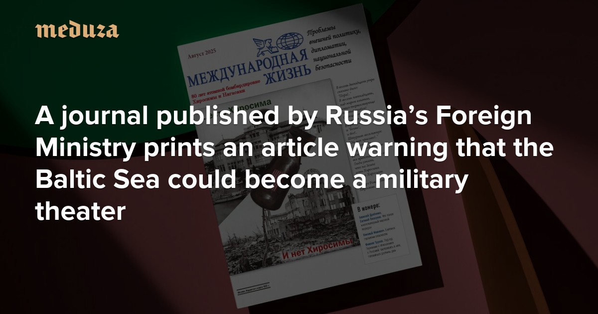 The Russian Foreign Ministry journal “International Affairs” recently published an article urging Moscow to view the Baltic Sea as a “potential theater of military operations.” Journalists at Agentstvo drew attention to the text on Tuesday, August 19. The monthly journal, whose editorial board is overseen by Foreign Minister Sergey Lavrov, features essays on international politics, diplomacy, and global security. Meduza summarizes the boldest claims of the controversial text on the looming “Baltic danger.”