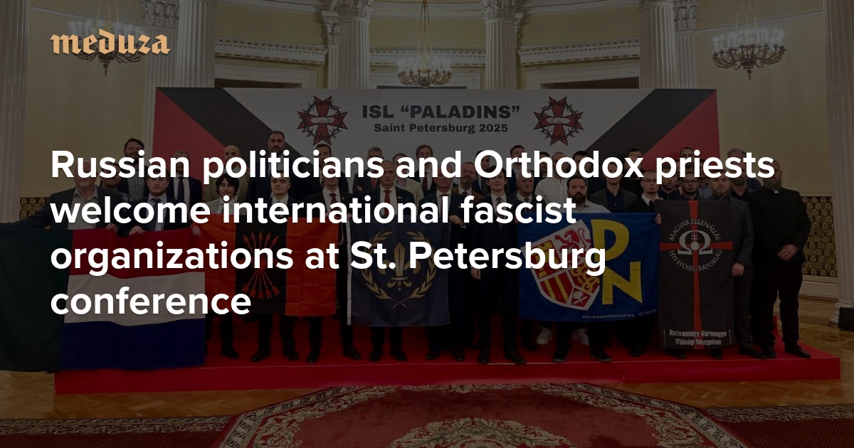 In mid-September, members of fascist groups from around the world convened in St. Petersburg, Russia. After joining a religious procession led by Russian Orthodox Church head Patriarch Kirill, delegates gathered in the city’s Legislative Assembly building, where they were welcomed by Russian politicians, far-right ideologues, and priests. According to Russian Orthodox tycoon Konstantin Malofeyev, the conference opened with a moment of silence for slain American right-wing activist Charlie Kirk. The independent outlet iStories detailed what happened at the gathering. Meduza shares an abridged translation of their reporting.