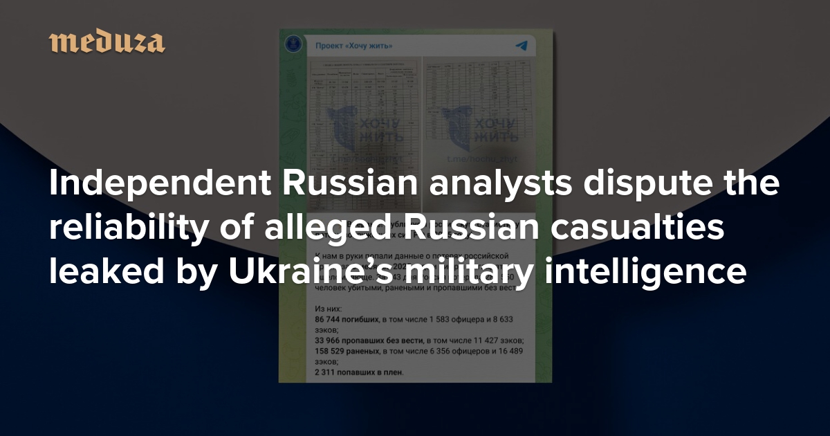 Counting bodies, casting doubts Independent Russian analysts dispute the reliability of alleged Russian casualties leaked by Ukraine’s military intelligence