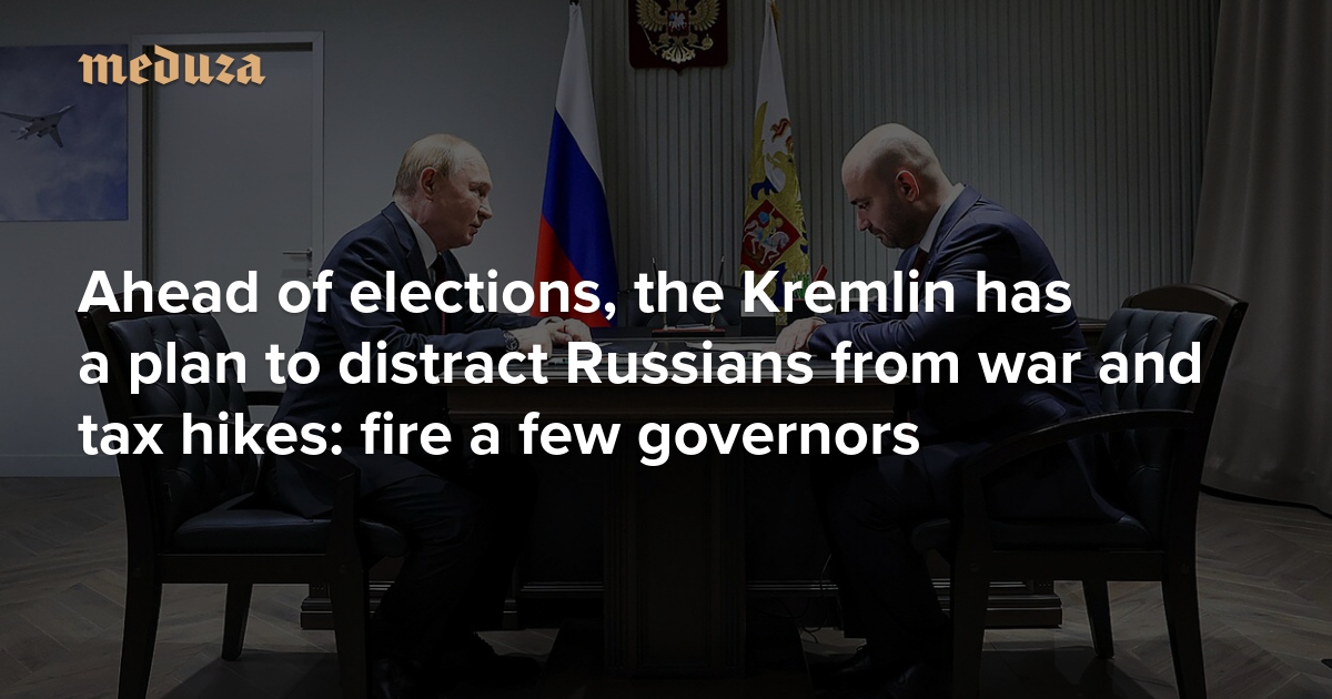 Faced with growing public frustration over tax hikes and the ongoing war against Ukraine, the Kremlin has a plan: fire unpopular governors. The goal, insiders say, is to distract Russians and project an illusion of change ahead of next year’s parliamentary elections. Governors in Russia often serve as lightning rods for local anger — something the Putin administration hopes to exploit. Meduza special correspondent Andrey Pertsev spoke to Kremlin insiders to find out who’s at risk and why Moscow believes the shake-ups could help.