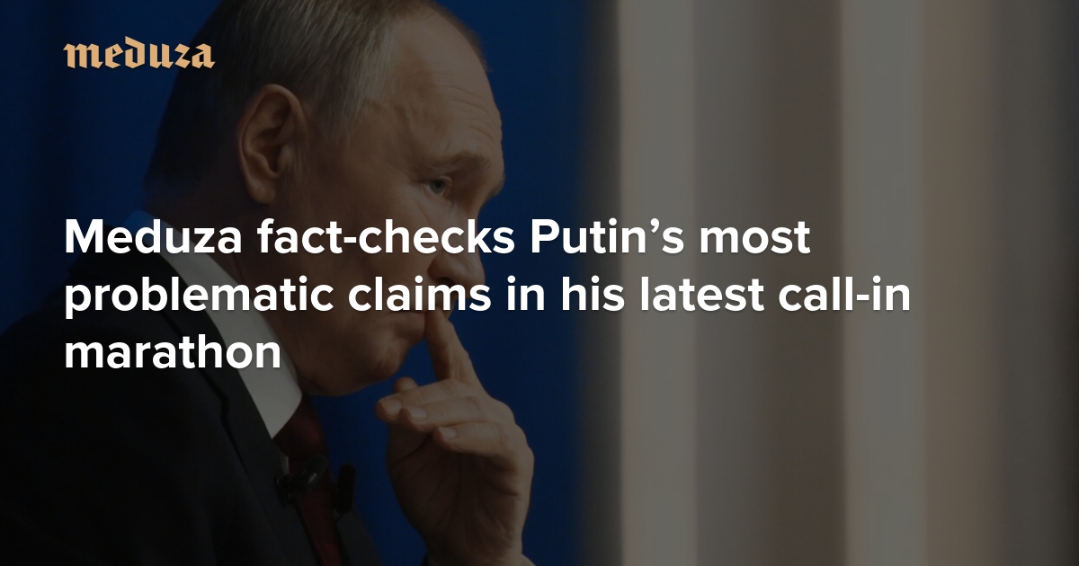 On Friday, President Vladimir Putin held his annual Direct Line call-in show, where he fielded questions from carefully selected journalists and Russian citizens for nearly four and a half hours. This televised event gave Putin yet another opportunity to expound upon everything from the war in Ukraine and relations with the West to the state of the Russian economy. But as usual, many of his remarks were either not entirely correct or downright untrue. Meduza fact-checks some of Putin’s most confounding takes.