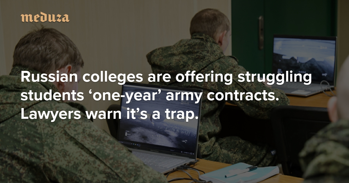 Russian colleges are offering failing students a new way to avoid expulsion: join the military for a year as a drone operator. Schools claim these “special contracts” can be terminated after 12 months, unlike standard service agreements, which remain in force until the end of Vladimir Putin’s “partial mobilization.” Lawyers warn there’s no such thing. The outlet Cherta examined how colleges are helping the Kremlin recruit soldiers for its war in Ukraine — and what students may actually be getting themselves into. Meduza summarizes the outlet’s reporting.