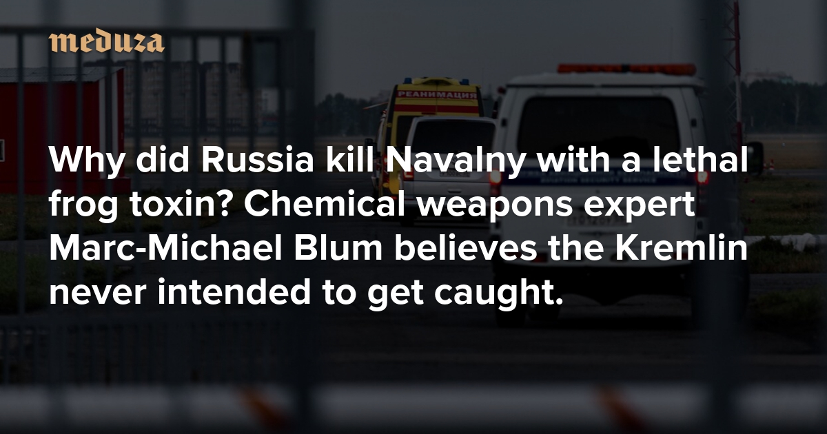 The way Blum sees it, the poison that killed Navalny leaves no doubt that he was assassinated. “If you are in a prison camp in northern Russia, there are no frogs from South American jungles. So clearly, there’s not even a chance that this could have been, say, accidental exposure,” Blum told Meduza. “In my opinion, that makes it very clear that somebody murdered him,” he added.