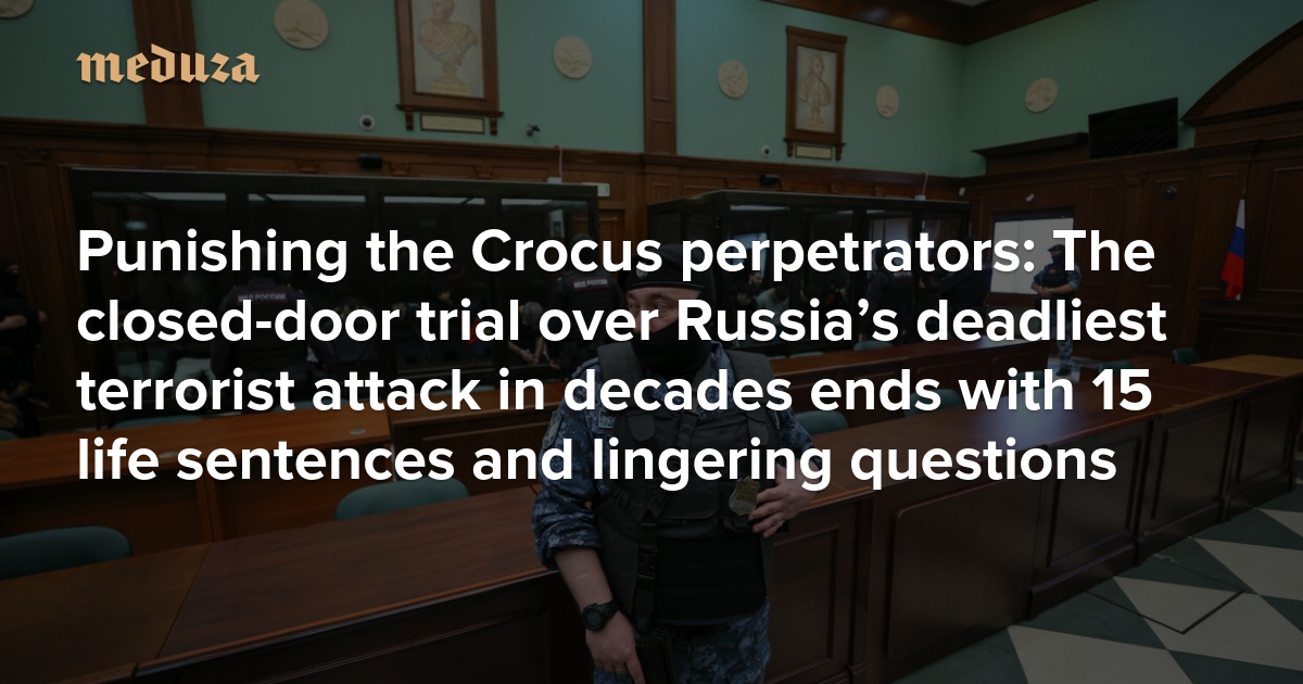 On March 22, 2024, a group of terrorists stormed the Crocus City Hall entertainment complex outside Moscow, opened fire on the crowd, and then set fire to the building. At least 150 people were killed, making this the deadliest terrorist attack in modern Russian history since the 2004 Beslan school siege. The four gunmen stood trial alongside 15 alleged accomplices, and on March 12, 2026, a Moscow court sentenced nearly all the defendants to life in prison. Meduza looks back on how the closed-door trial unfolded and examines the questions left unanswered after the verdict.
