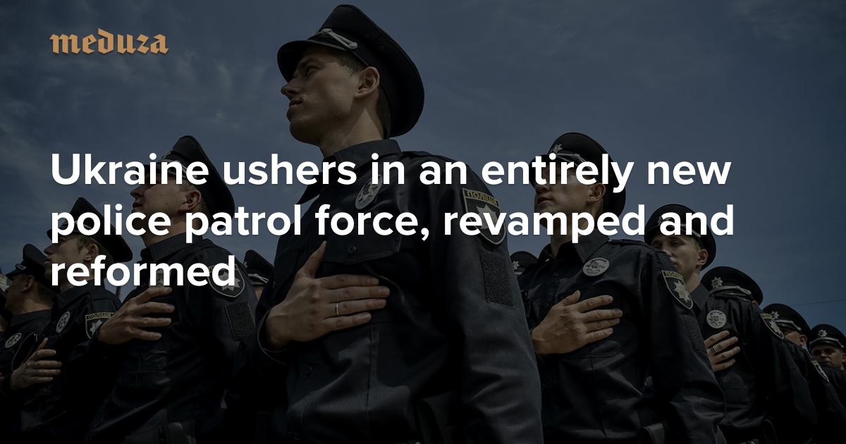 This past weekend, on July 4, Kiev welcomed an entirely new police patrol force, which differs from the old police in both uniforms and, apparently, manners. The new patrol officers will serve on traffic duty and manage other police functions. A huge crowd of new recruits gathered in Sofia Square in Kiev to take the oath of office. Internet users seemed to take a special interest in the ceremony, cracking jokes about the American comedy Police Academy and police-themed pornography. Meduza presents a photo series on Kiev's newest finest.