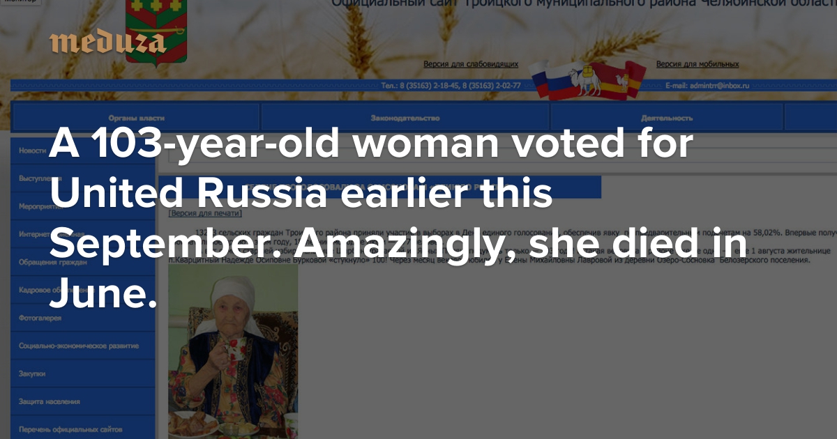 A 103-year-old woman voted for United Russia earlier this September. Amazingly, she died in June.