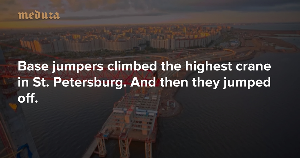 Base jumpers climbed the highest crane in St. Petersburg. And then they jumped off.