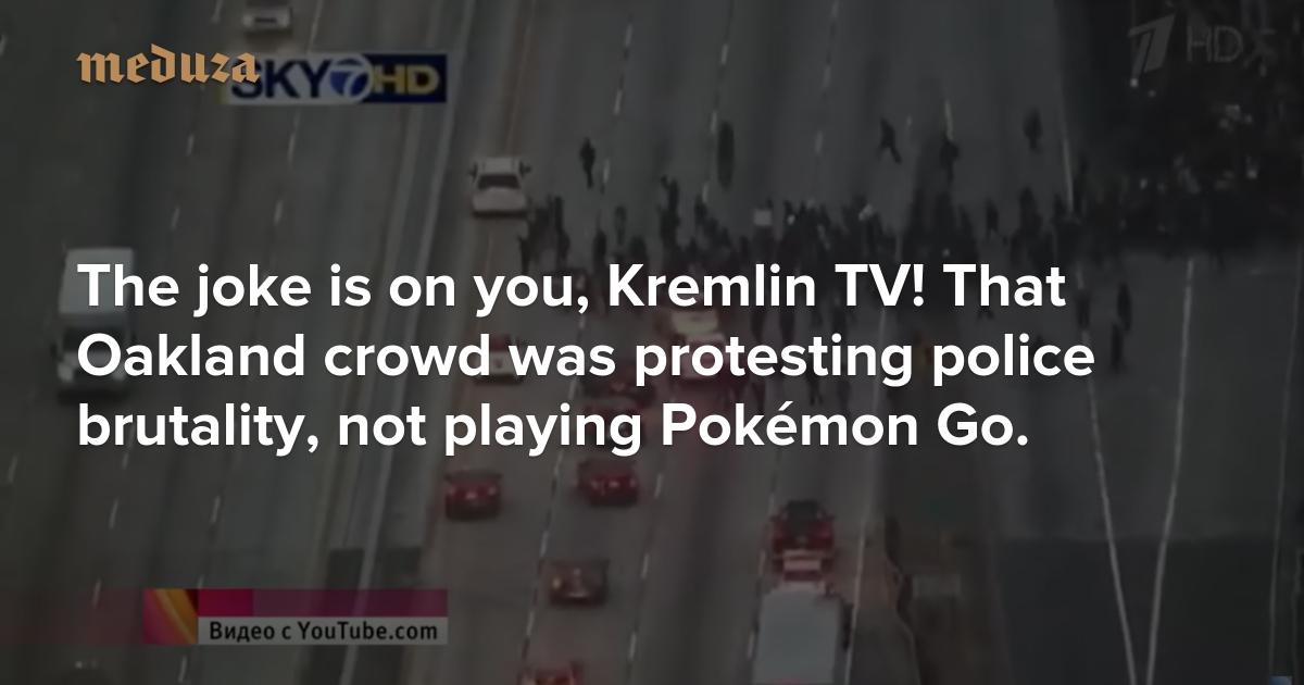 The joke is on you, Kremlin TV! That Oakland crowd was protesting police brutality, not playing Pokémon Go.