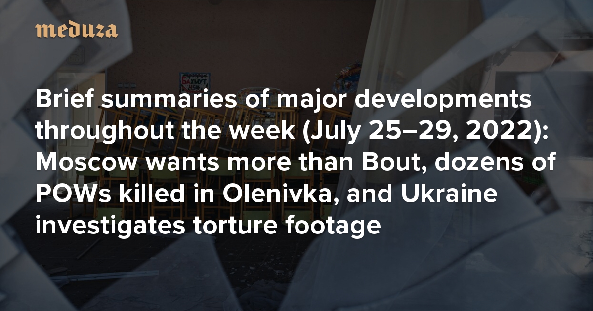 News Feed Brief summaries of major developments throughout the week (July 25–29, 2022): Moscow wants more than Bout, dozens of POWs killed in Olenivka, and Ukraine investigates torture footage