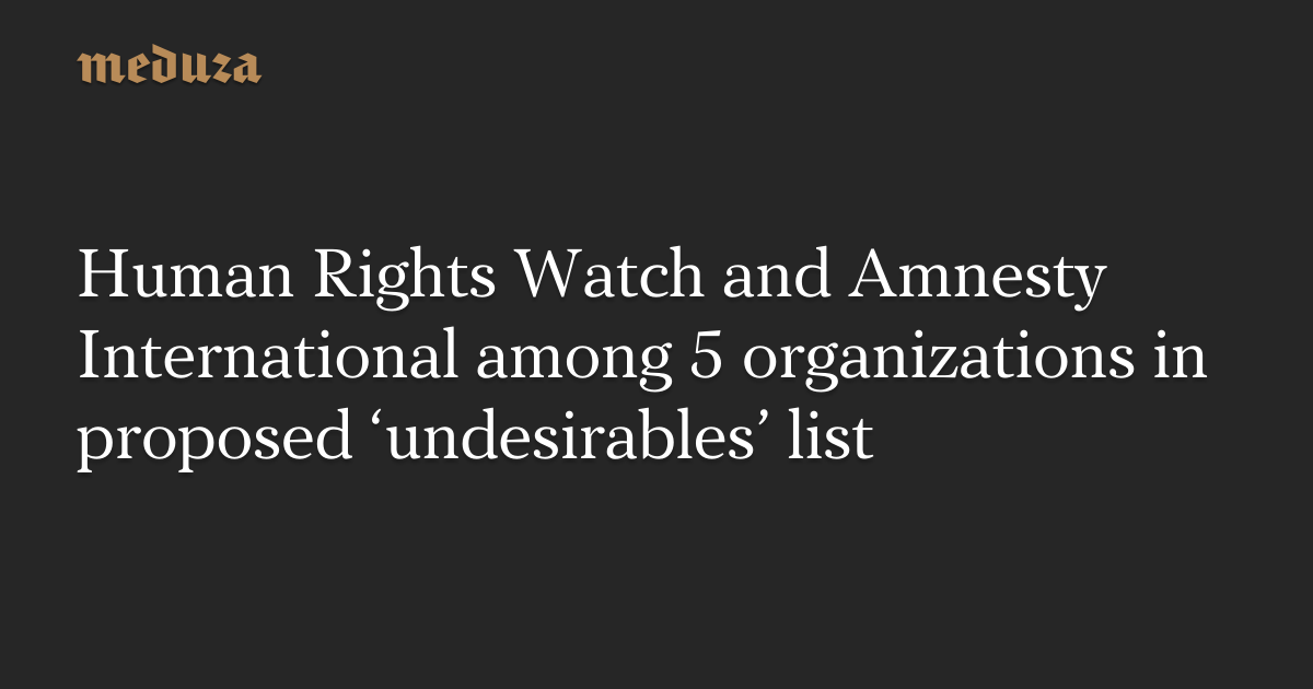 Human Rights Watch and Amnesty International among 5 organizations in proposed ‘undesirables’ list