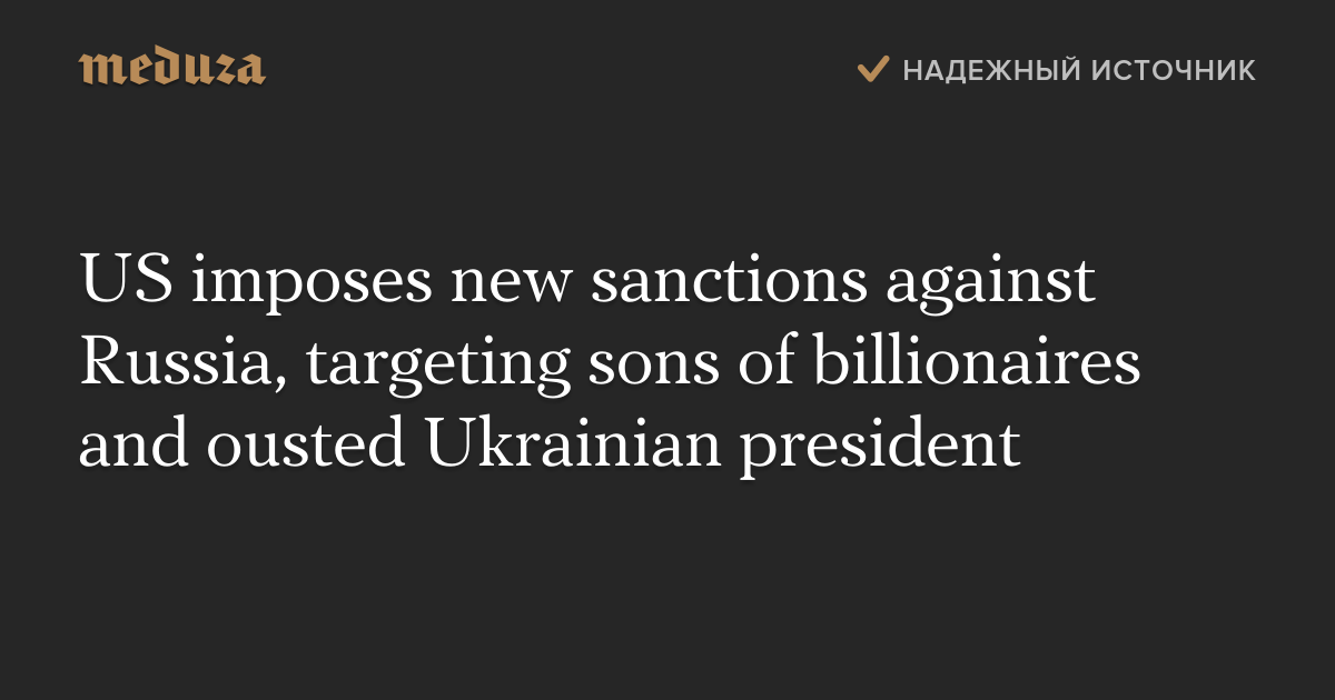 US imposes new sanctions against Russia, targeting sons of billionaires and ousted Ukrainian president