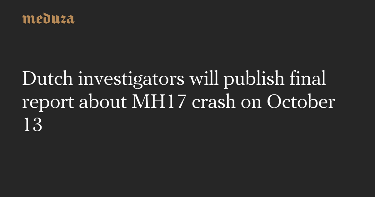 Dutch authorities have announced that the full version of the long-awaited final report on the investigation into Flight MH17 will be published on October 13.