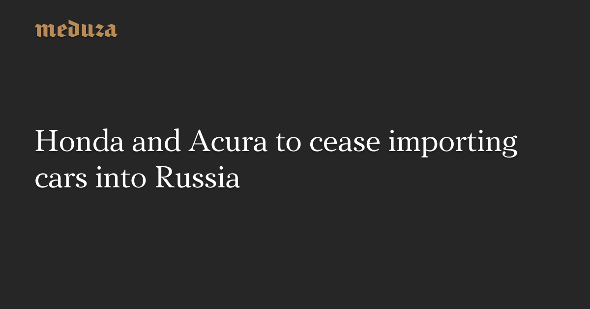Honda has decided to cease importing cars, motorcycles, and power equipment into Russia, according to the magazine Za rulem (“Behind the Wheel”), which says the company’s Russian leadership made the announcement to employees and dealers this week. Honda is expected to cease imports by the end of the year.