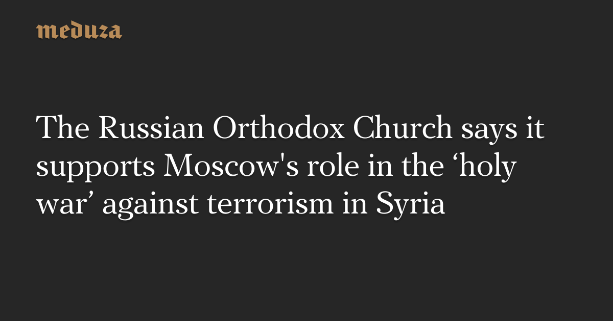 The Russian Orthodox Church says it supports Moscow's role in the ‘holy war’ against terrorism in Syria