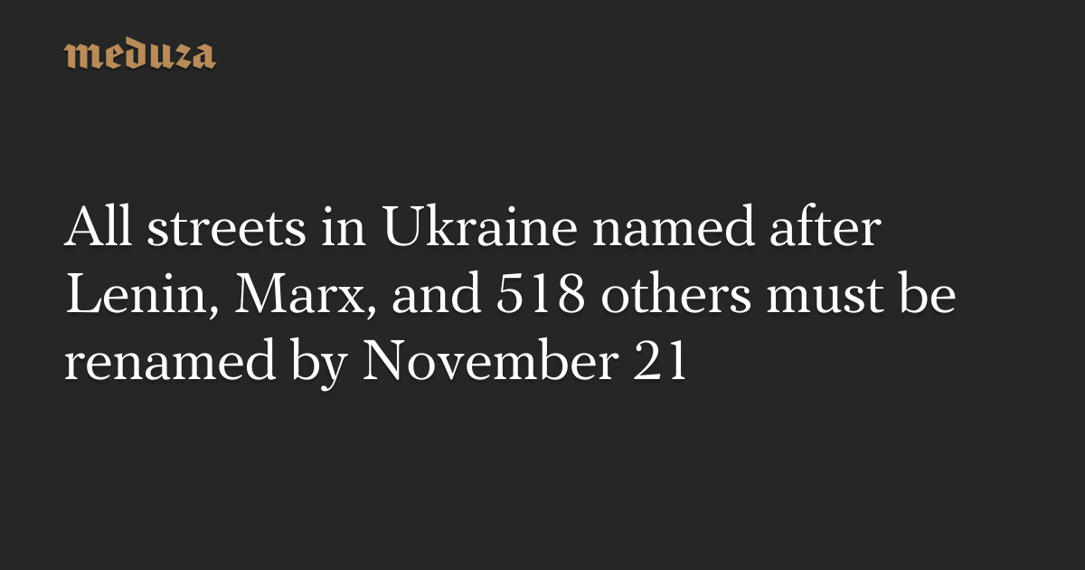All streets in Ukraine named after Lenin, Marx, and 518 others must be renamed by November 21