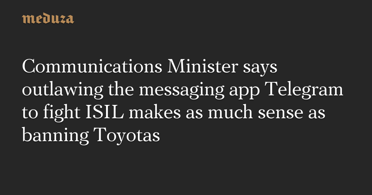 Communications Minister says outlawing the messaging app Telegram to fight ISIL makes as much sense as banning Toyotas