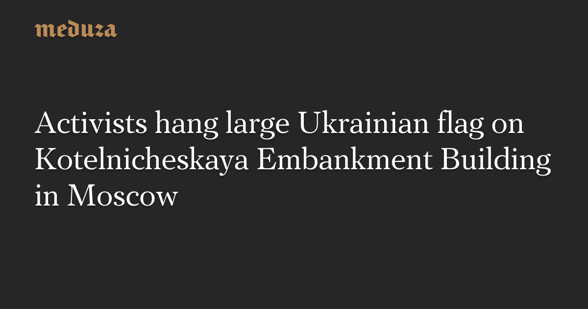 Activists hang large Ukrainian flag on Kotelnicheskaya Embankment Building in Moscow