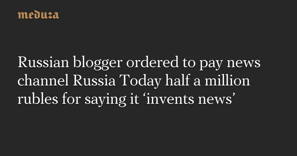 Russian blogger ordered to pay news channel Russia Today half a million rubles for saying it ‘invents news’