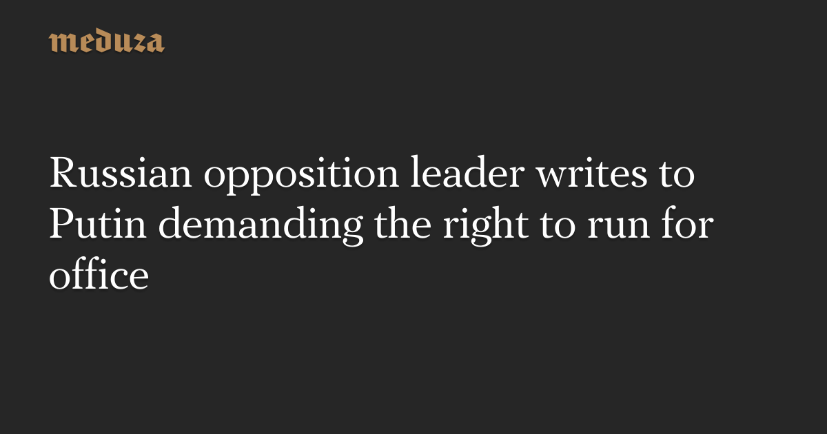 The anti-corruption activist and prominent opposition leader Alexey Navalny has penned an open letter to President Vladimir Putin, Prime Minister Dmitry Medvedev, and Russia’s human rights commissioner, Ella Pamfilova, demanding access to the ballot for himself and his political party, the Party of Progress.