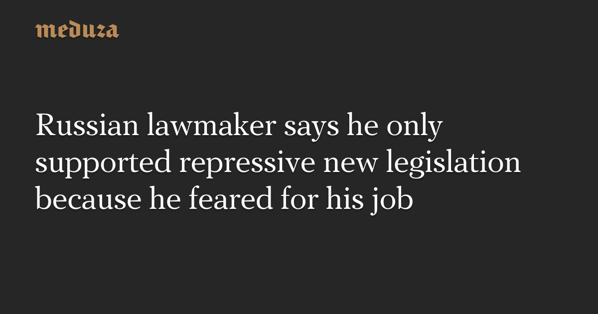 Russian lawmaker says he only supported repressive new legislation because he feared for his job