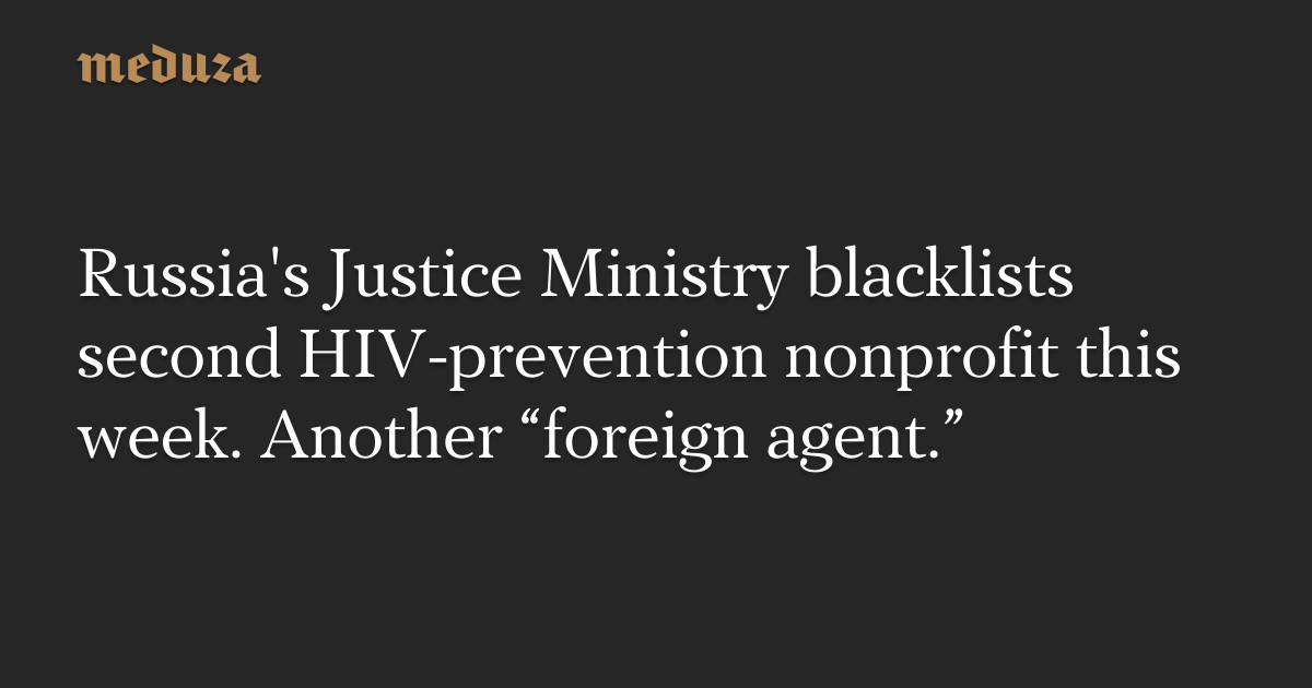 Russia's Justice Ministry blacklists second HIV-prevention nonprofit this week. Another “foreign agent.”