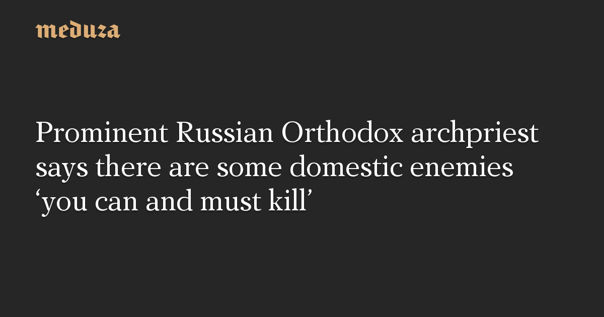 Prominent Russian Orthodox archpriest says there are some domestic enemies ‘you can and must kill’