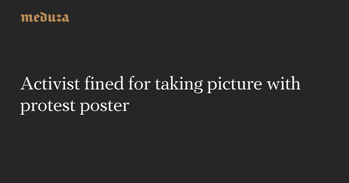 A municipal court in Russia’s Kuban region has fined local activist Nina Solovyeva 20,000 rubles (just over $300) for organizing an unauthorized mass movement in the form of having her picture taken while holding a poster.