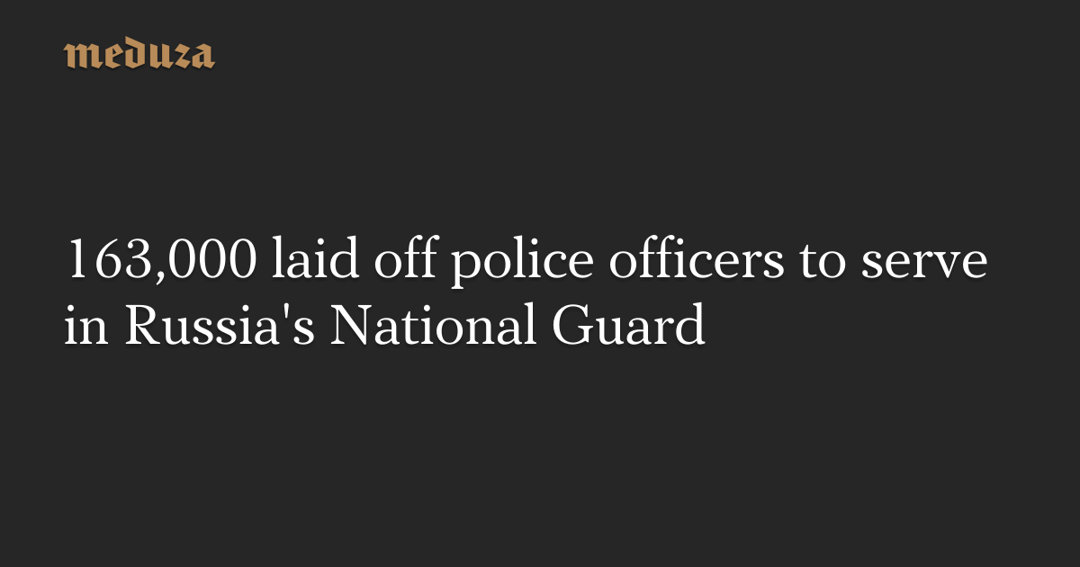 The 163,000 police officers who were rendered redundant earlier on Tuesday when Russian President Putin signed a degree reducing the maximum number of law enforcement officials to 904,881 individuals, effective October 1, 2016, compared with the current 1.068 million, will be transferred to the country’s National Guard, reported the Ministry of the Interior.